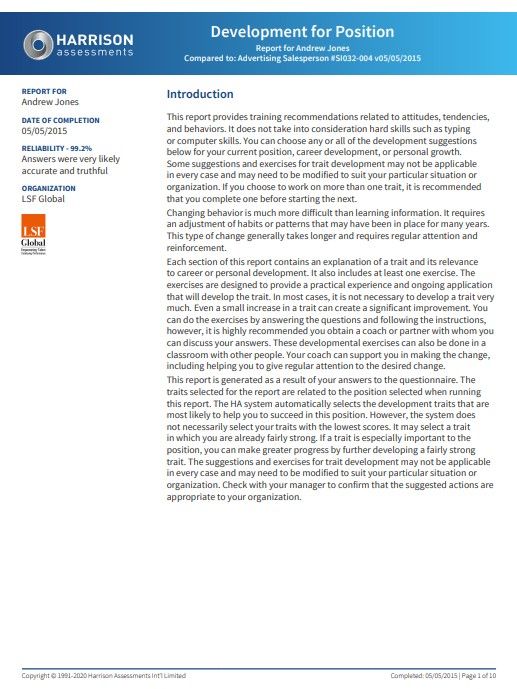 This report provides personalized development guidance based on behavioral traits essential for success in a specific role. It offers practical exercises and coaching strategies to enhance performance, influence, and decision-making—empowering users to grow in alignment with role expectations.